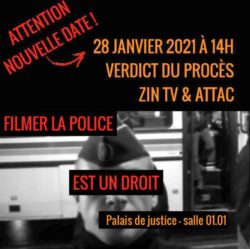 Audience publique verdict du procès ZIN TV & ATTAC aux policiers ayant délibérément detruit leurs imagest