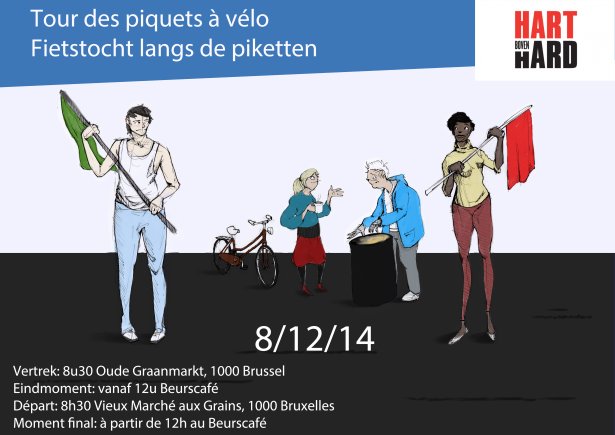 Tour des piquets à vélo avec le collectif HART BOVEN HARD/LE COEUR, PAS LA RIGUEUR