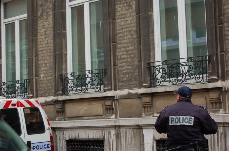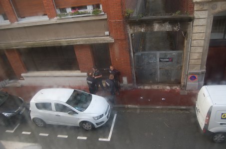 Nous sommes quelques uns devant ce même bâtiment pour soutenir les occupants et documenter les hypothétiques passages de la police, voire une expulsion du lieu. Va et vient de la police et visite de l’huissier pour « constater l’occupation ».