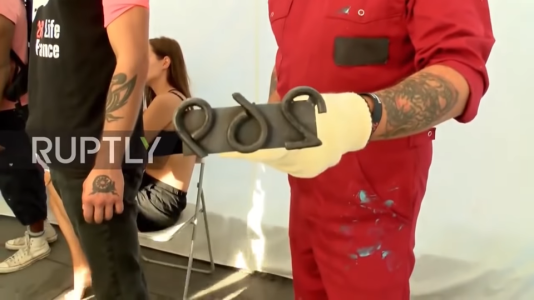 La vidéo a été tournée par l’agence Ruptly (qui dépend de la chaîne russe RT) lors d’une manifestation qui a bel et bien eu lieu à Paris, place de la République, le 26 septembre 2016, à l’appel de l’association 269 Life France, comme le rapportait alors Reporterre. « Dans le barnum blanc voisin, fermé au public, un bourreau entraînait les militants – volontaires –, la chaîne au cou pour les marquer au fer rouge par solidarité avec les animaux, décrit le site spécialisé dans les questions écologiques. Les plus déterminés n’ont pas sourcillé pendant l’acte, d’autres devaient être maintenus fermement au sol à cause des tremblements de leur corps. Certains ont changé d’avis au dernier moment, la volonté ébranlée par les hurlements des volontaires précédents. Si la vue de la peau se décomposant au contact du fer rouge est insupportable, ce n’est rien comparé à l’odeur de chair humaine brûlée se dégageant de la tente. Acte ultime de compassion ou folie et absurdité, ils étaient une dizaine ce jour-là à se faire marquer du chiffre 269. »