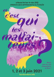 Après 4 années d’instruction pour « association de malfaiteurs », des milliers d’heures d’écoutes par la gendarmerie, un dossier de 15.000 pages, des mètres cubes de matériel saisi, un harcèlement policier omniprésent dénoncé par la Ligue des Droits de l’Homme, l’heure de la mascarade judiciaire a sonné. Les 1er, 2 et 3 juin au Tribunal de Bar-le-Duc se tiendra le procès des sept « malfaiteurs » de la lutte à Bure. Des ami.e.s luttant contre le projet de méga-poubelle atomique Cigéo, ont été privé.e.s de leur liberté de circuler et empêché.e.s de se parler pendant de longues années. Cette procédure a constitué une peine et a tenté de paralyser tout un mouvement de résistance. Ce qu’on musèle chez ces personnes, c’est leur engagement antinucléaire, leurs convictions et leur liberté d’expression.