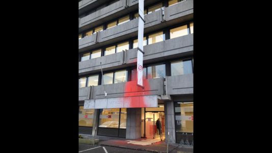 Ce matin on a pu constater que la façade de l’Onem avait reçu une trace de la rage grandissante